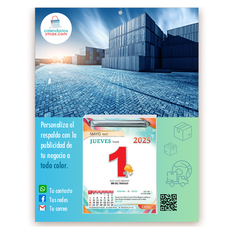 Respaldo de cartulina sulfatada rígida, con block exfoliador diario impreso a todo color (frente y vuelta) y ojillo para colgar.
